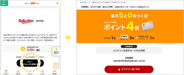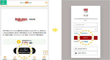 ※ 複数店舗で商品購入される場合は店舗ごとに「お買い物でポイントコーナー」を経由してからご利用ください。