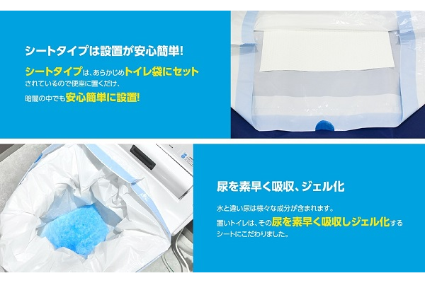 - シートが、トイレ袋にセットされているので便座に置くだけ、安心簡単に設置!