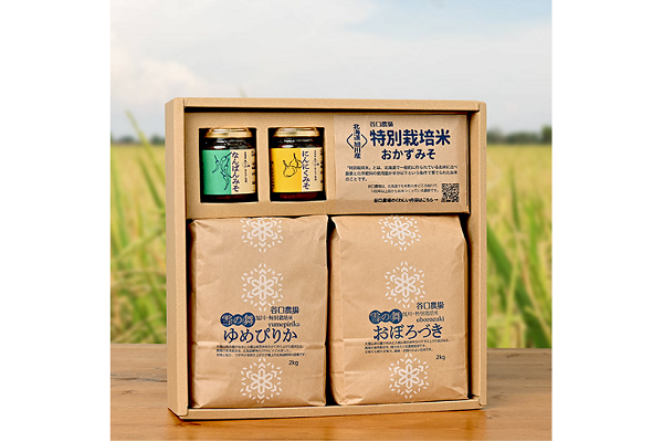 - 谷口農場さんの北海道旭川市産ゆめぴりか・おぼろづきとおかず味噌2種セット