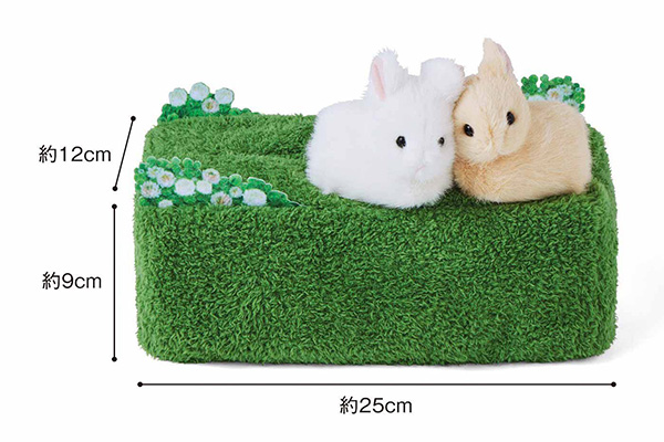 シロツメクサの草むらの中で、ちっちゃな2羽の子うさぎが仲よく寄り添う姿がかわいいボックスティッシュカバー。ふさふさの毛並みや草むらをイメージした生地もリアルです。箱庭みたいな世界観に毎日ほっこり癒やされます。