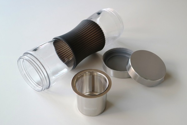ストレーナー(茶こし)が付いているので、お茶・紅茶・コーヒーなど何でも淹れられます。お湯でも水出しでもお使いいただける、使い方自由なツインキャップボトルの水筒です。