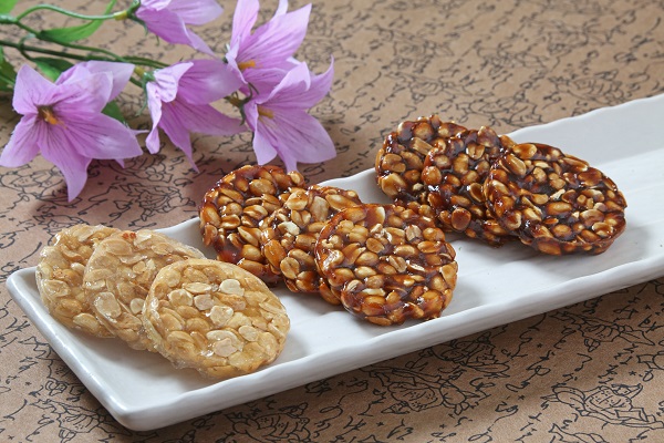 堅そうな見た目とは裏腹に、カリッとした歯ごたえの打保屋の豆板(まめいた)。保存料、着色料は使用せず、職人の技により素材本来の旨味を引き出しています。落花生と糖蜜のハーモニーを存分に味わえる逸品です。