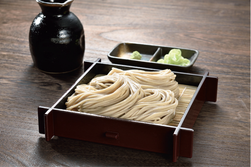 今年実った北海道産の蕎麦の実を自社製粉工場の石臼で製粉し、海藻の布のりをつなぎにした新潟県独特な製法でつくり上げた、